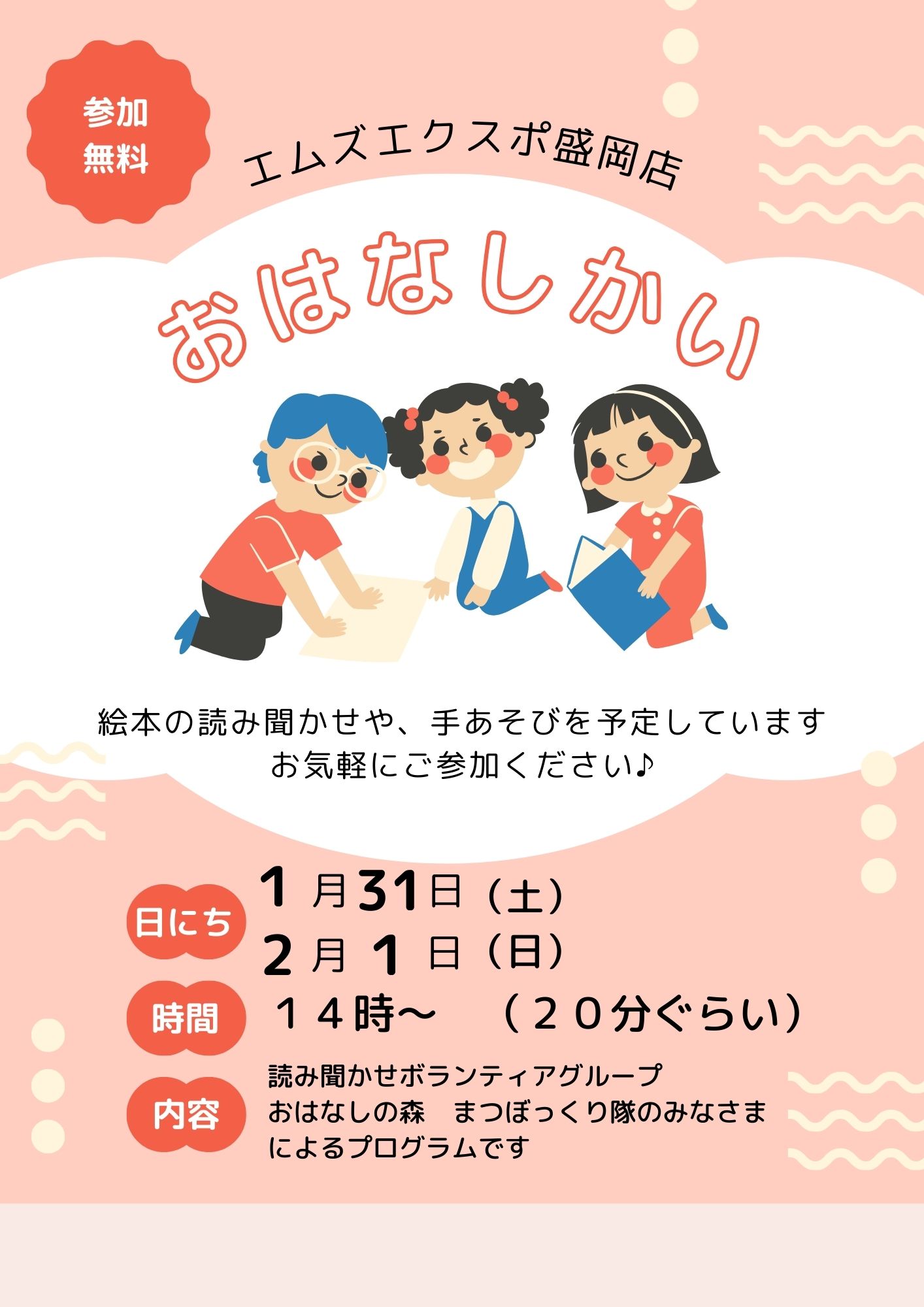 HOME 新着情報 2026.2.17 エムズエクスポ盛岡店 / 書籍コーナー 2026年本屋大賞ノミネート作決定! 2026年本屋大賞ノミネート作が決定しました!全10タイトルをどど~んとレジ前通路で展開中です🍀今年はどの作品が大賞をとるのでしょうか✨発表は4月9日です!皆様のご来店お待ちしております♪ 2026.2.17 エムズエクスポ盛岡店 / お知らせ 期間限定!桜ラッピングはじめました! エムズエクスポ盛岡店・花巻店では好評の桜ラッピングを今年もはじめておりますオリジナル桜柄(白・ピンク)の包装紙を使用した無料ラッピングです入学祝や進学祝い、卒業や就職などのお祝いにピッタリですのでこの機会にぜひご利用くださいませご来店お待ちしております! 2026.1.28 エムズエクスポ盛岡店 / 書籍コーナー イベント開催のおしらせ! 「はじめてのZINEづくり in Winter」2026年1/31(土)・2/1(日) 2日間開催です!昨年10月の前回はハロウィンがテーマでしたが、今回は冬そして春を少し先取りして、オシャレで可愛いオリジナル小冊子を作りましょう♪午後には「おはなし会」も開催です。皆様のご来店お待ちしております! 2026.1.20 エムズエクスポ盛岡店 / ミュージックコーナー 徳永英明 ニューアルバム『COVERS』リリース 徳永英明 メジャーデビュー40周年 1986年1月21日、「レイニー ブルー」でのデビューから40年。その記念すべき日に、ニューアルバム『COVERS』のリリースが決定!日本コロムビア移籍後、初のスタジオレコーディング作品。大ヒットシリーズ「VOCALIST 6」以来、実に11年ぶりとなるカヴァーアルバムです。今回は男女問わず幅広いアーティストの名曲をセレクト。徳永英明が“いま歌いたい”楽曲を、渾身のアレンジと歌声で新たに表現します。40年の軌跡の先に完成した、新たな響き。ぜひご堪能ください。 2026.1.13 エムズエクスポ盛岡店 / ミュージックコーナー 幾田りら ニュー・アルバム発売 幾田りら、約3年ぶりの集大成ニュー・アルバム『#Laugh』発売されました。映画・アニメ・ドラマ主題歌から今作のために書き下ろされた新曲まで——挑戦と進化が詰まった全13曲。さらに初回盤には豪華コラボ&カバー17曲+36Pフォトブック📸これは見逃せない…! 2026.1.8 エムズエクスポ盛岡店 / 書籍コーナー 一生どうでしょうします! 『水曜どうでしょう DVDコレクション』好評販売中!豪華特典映像が収録されたファン垂涎のシリーズがとうとう発売です♪雑誌コーナーとレジ前話題書コーナーで大きく展開中!番組ファンの雑誌担当が手掛けた売場を是非お楽しみください!ご来店お待ちしております 2026.1.1 エムズエクスポ盛岡店 / お知らせ 謹賀新年 あけましておめでとうございます。昨年もマルカングループ各店をご利用いただき誠にありがとうございました。本年も更なるサービス向上に努めて参りますので今後ともご愛顧を賜りますようお願い申し上げます。皆様のご来店をスタッフ一同心よりおまち申し上げております。 2025.12.28 エムズエクスポ盛岡店 / 書籍コーナー さわエムベスト2026開催中! 恒例!『さわエムベスト』 開催中です😊期間:2025年12月26日(金) から 2026年2月28日(土)までさわや書店さんとエムズエクスポのスタッフが熱く推す20点のおすすめ本をご用意しました!期間中、フェア対象商品を1冊ご購入のお客さまへ「いいイロにっぽん」コラボしおり&カバー(文庫サイズ)を数量限定で差し上げておりますご来店お待ちしております! 2025.12.22 エムズエクスポ盛岡店 / 書籍コーナー 『くもんの知育玩具』 体験会のおしらせ 大人気!くもんの知育玩具「KUMON TOY」の体験会を行います‼楽しく遊びながら学べるようにつくられた「くもんの知育玩具」「お子さまが自ら学べ、力がつく」ノウハウを基礎に、夢中になってくり返し遊びたくなる楽しさなどが体験できます〇日時:2026年1月11日(日) 11:00~16:00〇場所:エムズエクスポ盛岡店 書籍コーナー無料でご参加いただけますので、みなさま是非お立ち寄りください🧒※参加者には「おみやげ」をプレゼントします! 2025.12.19 エムズエクスポ盛岡店 / お知らせ 年末年始営業時間のご案内 いつもエムズエクスポ盛岡店をご利用いただきありがとうございます。誠に勝手ながら、年末年始は下記内容に営業時間を変更いたします。お客様にはご不便をおかけ致しますが、何卒よろしくお願い申しあげます。 58件中 1 - 10件の項目を表示|<< <123456>>>| Store List エムズエクスポ盛岡店 アルテマルカン桜台店 エムズエクスポ花巻店 ドトール アルテマルカン桜台店 トイエムズ 桜台店 メガチャンス 花巻店 太陽光発電事業部 JOYFIT24LITE花巻店 エムウォッシュ FIT365弘前城東 ドトール アルテマルカン桜台店 FIT365水沢 FIT365北上 New Entrys 2026.02.17 エムズエクスポ盛岡店 2026年本屋大賞ノミネート作決定! 2026.02.17 エムズエクスポ盛岡店 期間限定!桜ラッピングはじめました! 2026.02.02 メガチャンス花巻店 衣料品買取30%UPキャンペーン 2026.01.28 エムズエクスポ盛岡店 イベント開催のおしらせ! 2026.01.20 エムズエクスポ盛岡店 徳永英明 